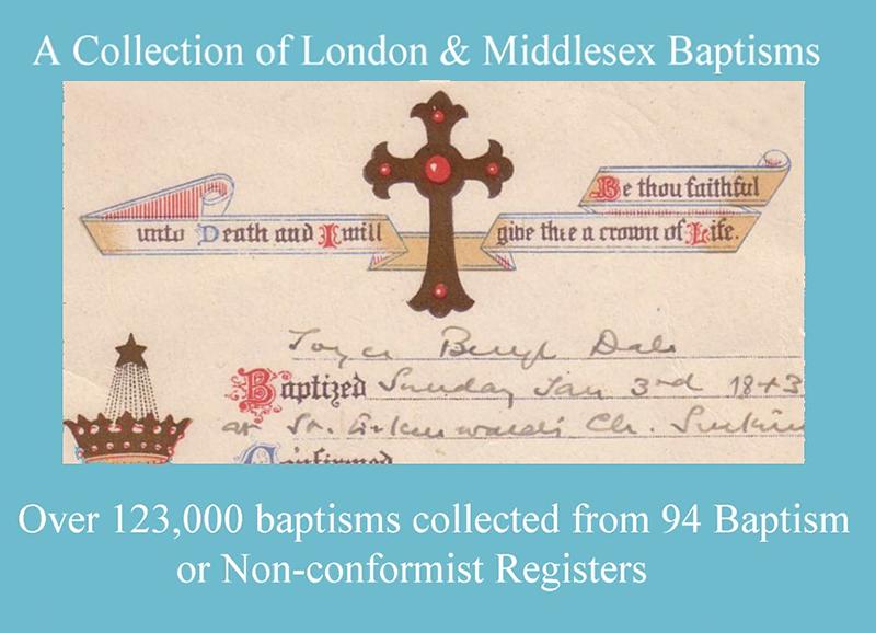 Over 123,000 baptisms collected from 94 Baptism or Non-conformist registers (published Jan 2012). The following places are included, but for some there are only a small number of records: