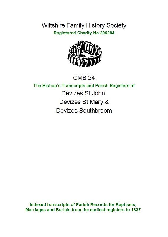 It includes baptism, marriage and burial transcripts from the earliest entries to 1837 for these parishes: Devizes St John, Devizes St Mary & Devizes Southbroom.