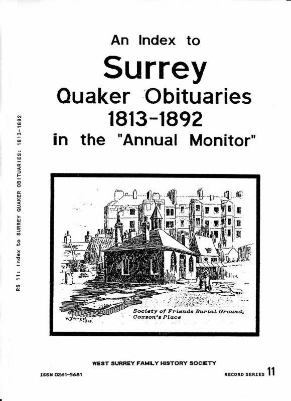 In 1894 was published a list of those people whose obituaries were printed in the Annual Monitor. Cliff Webb has extracted those references where the person's residence was in the ancient county of Surrey. 16 pages.